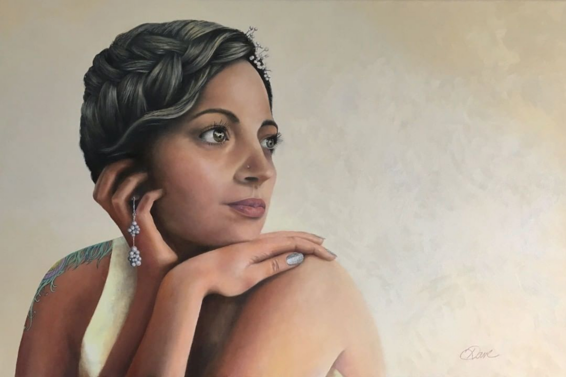 This painting of our beautiful daughter. Not only was I able to tattoo the feather on her shoulder a few years back.. I recently had the honour of walking her down the aisle.