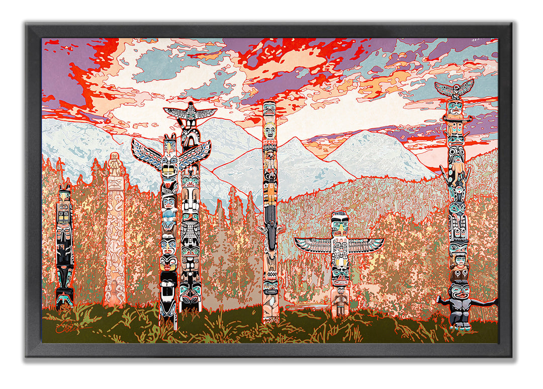 Drawing from years of silk screening, Daves visions break apart the power of Canadian landscapes and reforms them structurally into base elements. With a focus on Canadian Red, the compositions seem immense. While the shapes and forms collect like a tapestry creating the illusion of realism, the imagery harmonizes in a rhythmic contemporary abstract form,